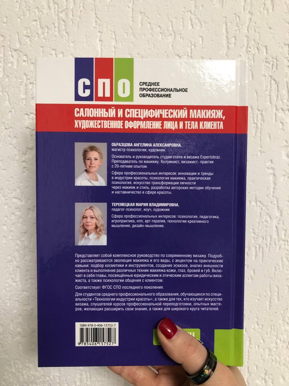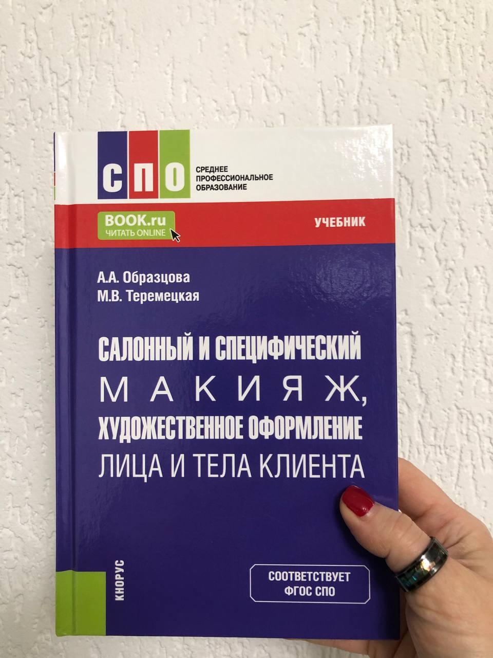 Образцова, А. А., Салонный и специфический макияж, художественное оформление лица и тела клиента : учебник / А. А. Образцова, М. В. Теремецкая. — Москва : КноРус, 2026. — 400 с. — ISBN 978-5-406-15752-7.
